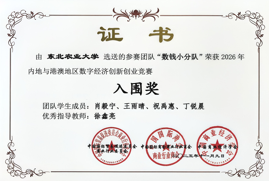 在2026年内地与港澳地区数字经济创新创业竞赛中,两支研究生队伍聚焦数字经济前沿领域,深度洞察市场需求与行业发展趋势,精心雕琢项目方案。他们以敏锐的创新思维,将前沿理论与实际应用紧密结合,打造出兼具前瞻性与可行性的创新项目。最终,凭借项目创新性、完整性和可行性脱颖而出,成功获得通往全国决赛的入场券,荣获“入围奖”,成为内地与港澳地区数字经济创新创业领域备受瞩目的新生力量。