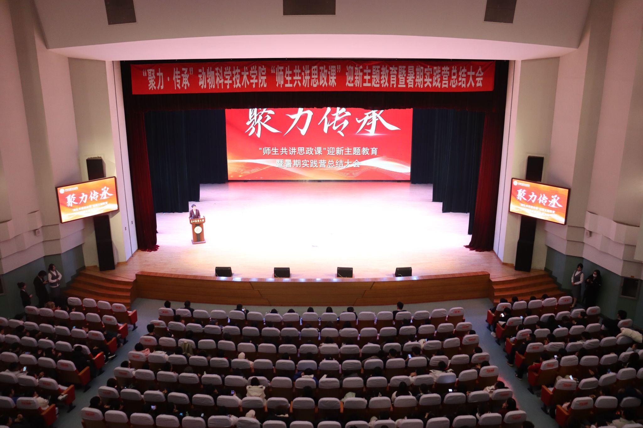 为深化产教融合育人成效,传承耕读精神,筑牢思政育人根基,11月26日,动物科学技术学院在音乐厅剧场举办“聚力・传承”师生共讲思政课迎新主题教育暨暑期实践营总结大会,本次大会分为“行业赋能知行合一”“薪火传习履践致远”两个篇章。人事处副处长黄芳芳,牧原食品股份有限公司饲料部总监、学院优秀校友张萌及人力资源部招聘经理王磊超等出席活动。学院领导班子,2025级全体新生及师生代表参加活动。活动由学院党委副书记焦阳主持。