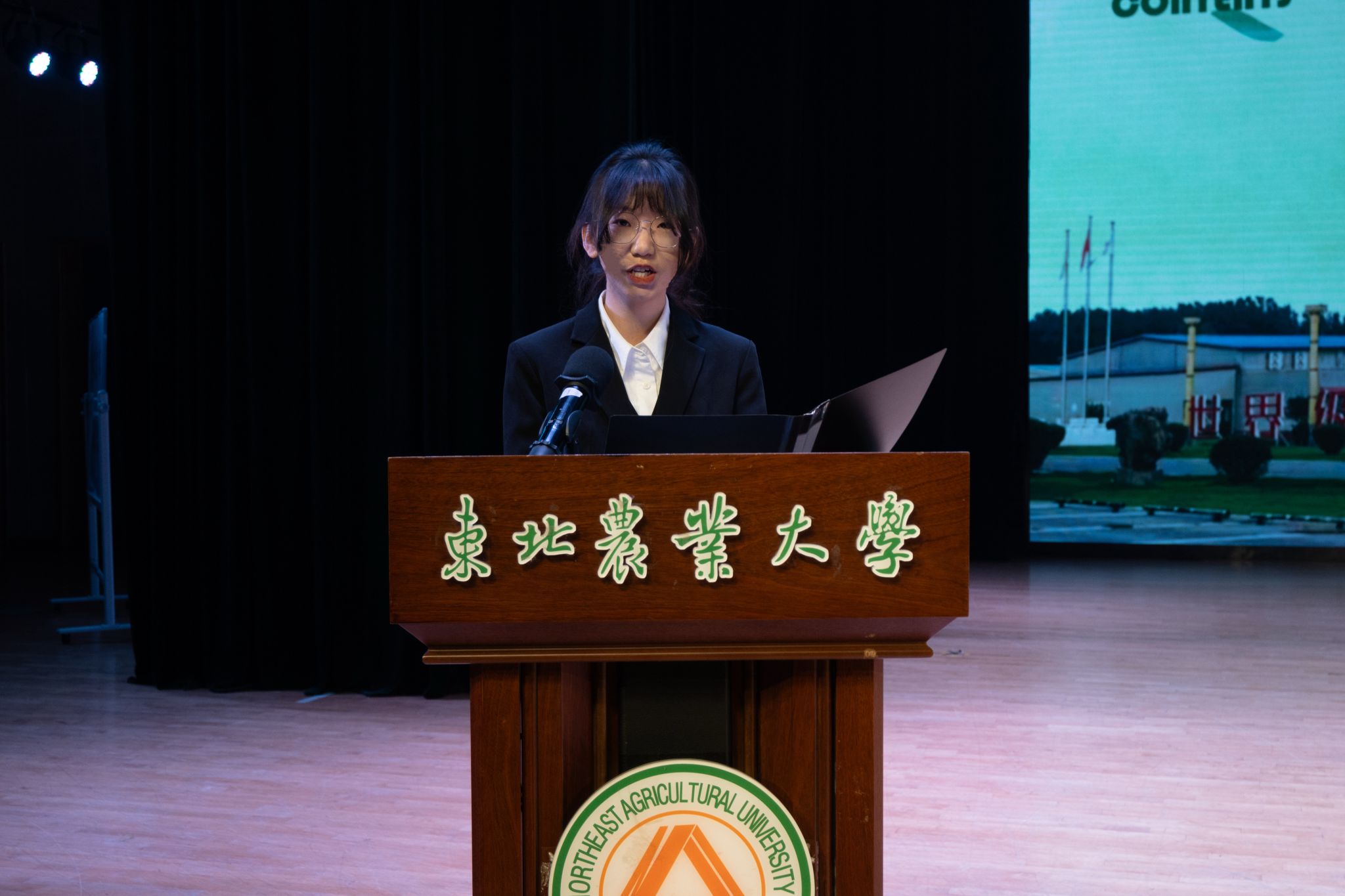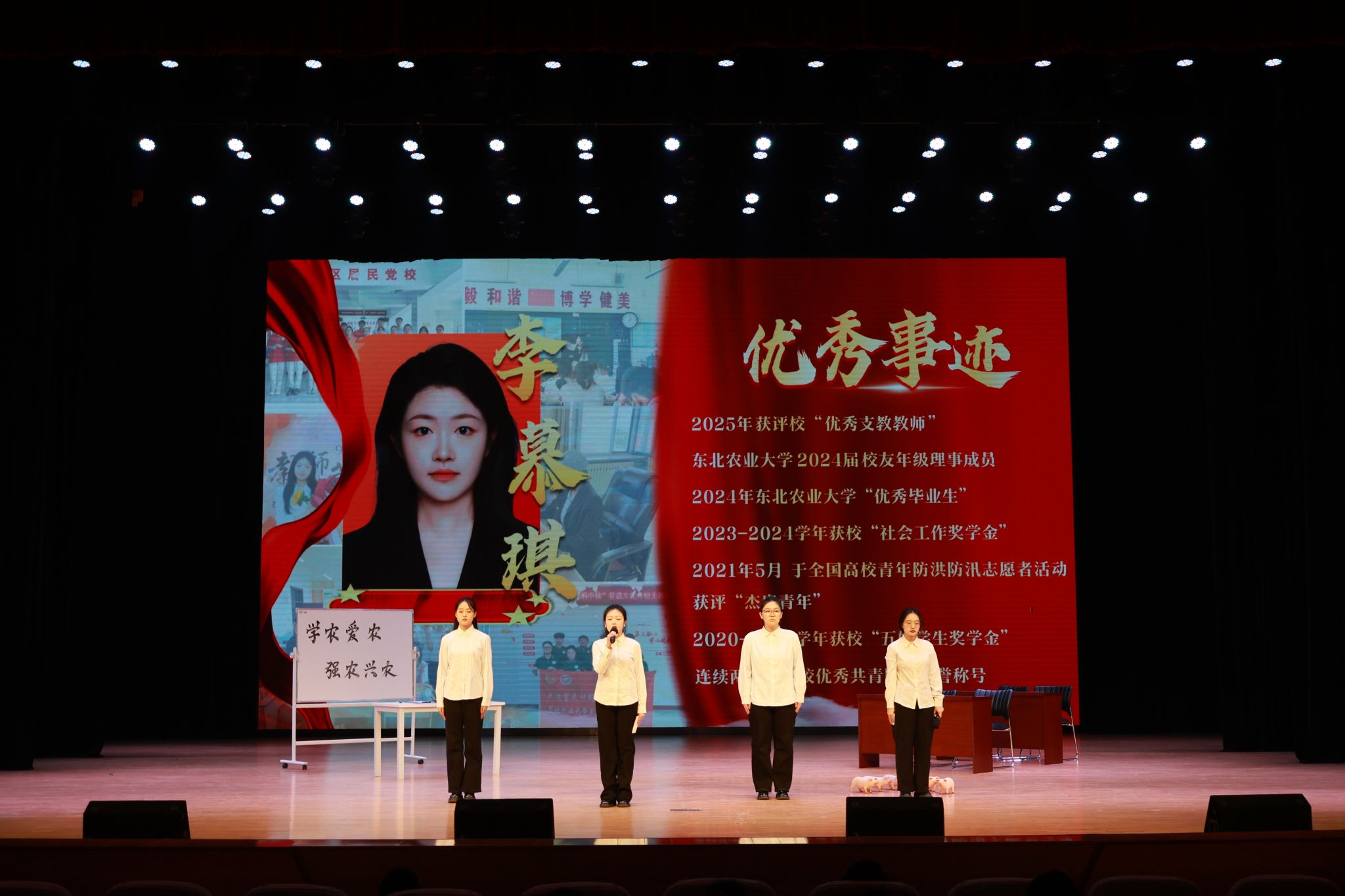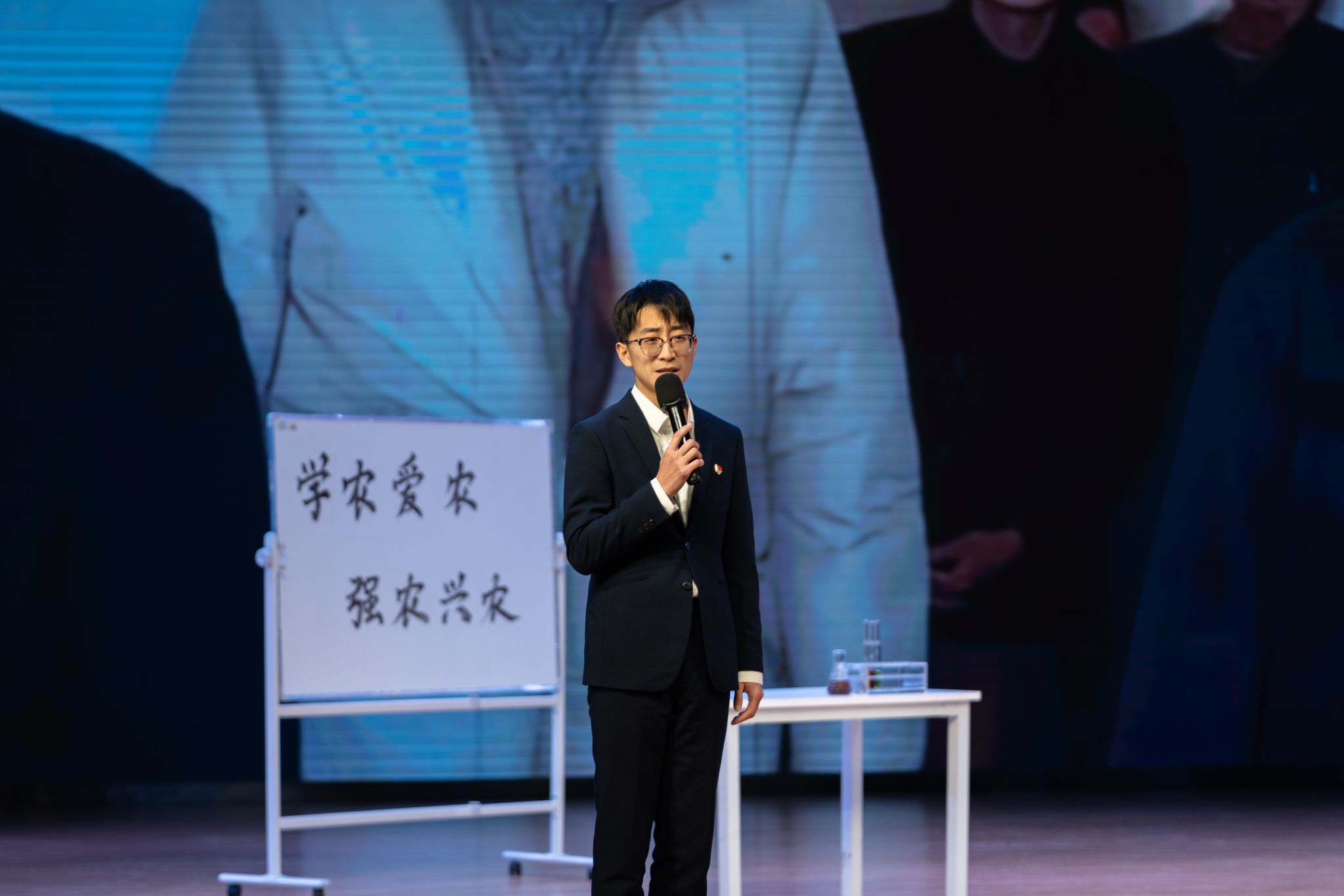 大会第二篇章以师生共讲思政课的创新形式展开。原创舞台剧《牧歌长河》循着时代足迹,讲述了许振英先生、王庆镐先生、盛志廉先生、杨山先生深耕畜牧领域的感人故事,生动诠释了“艰苦奋斗、自强不息”的东农精神,展现了一代代动科人坚守初心、奉献担当的精神传承。