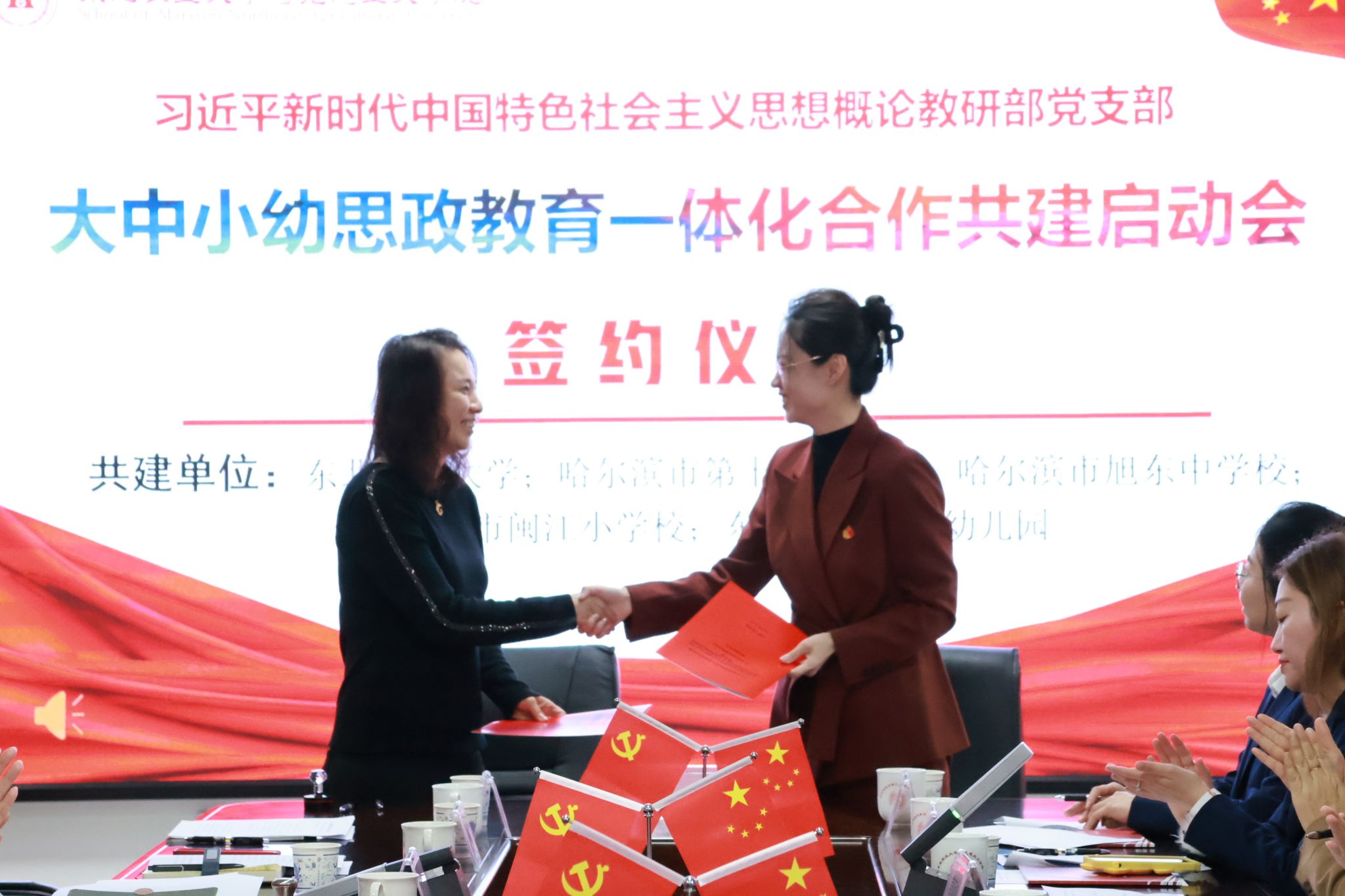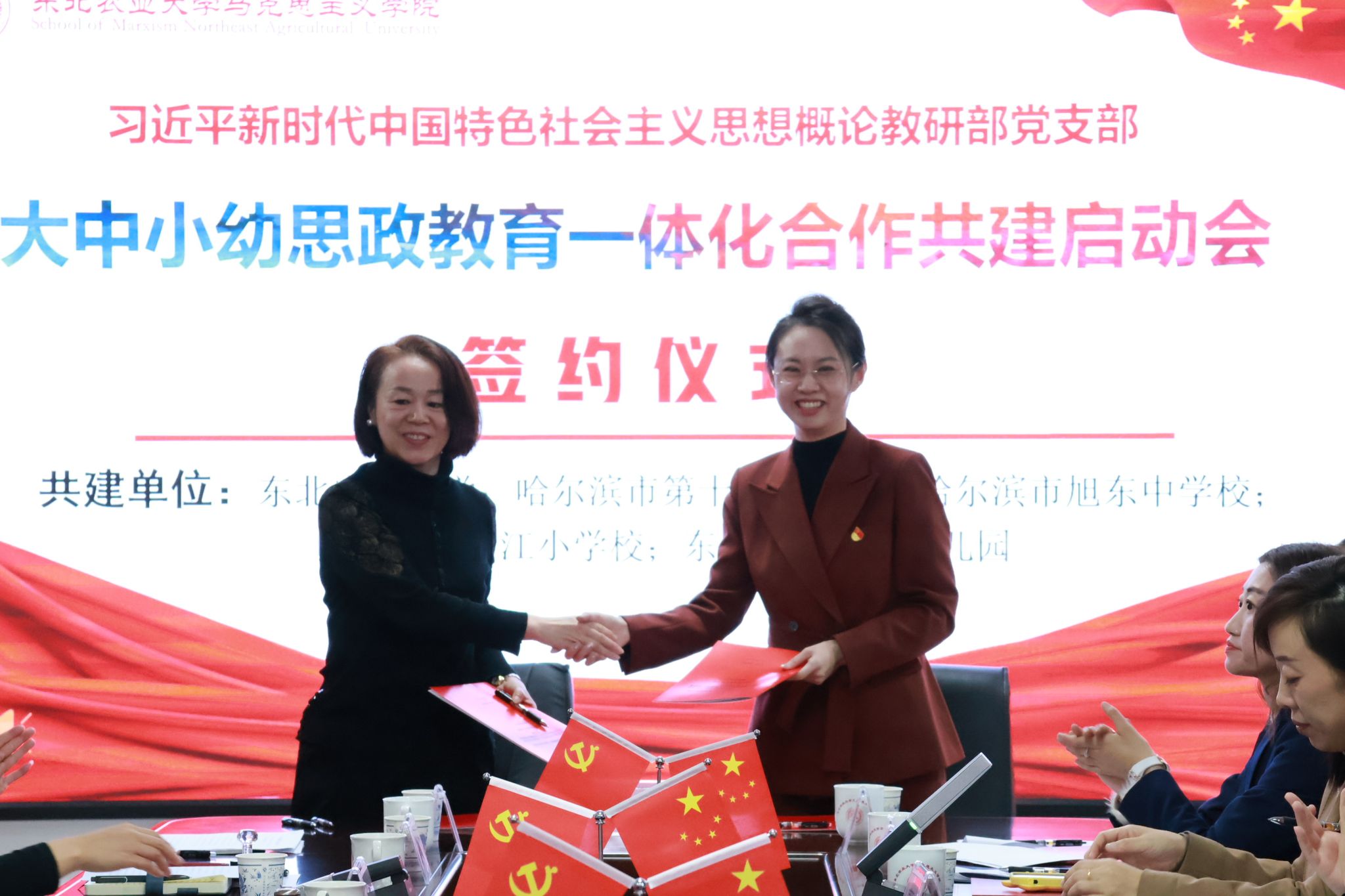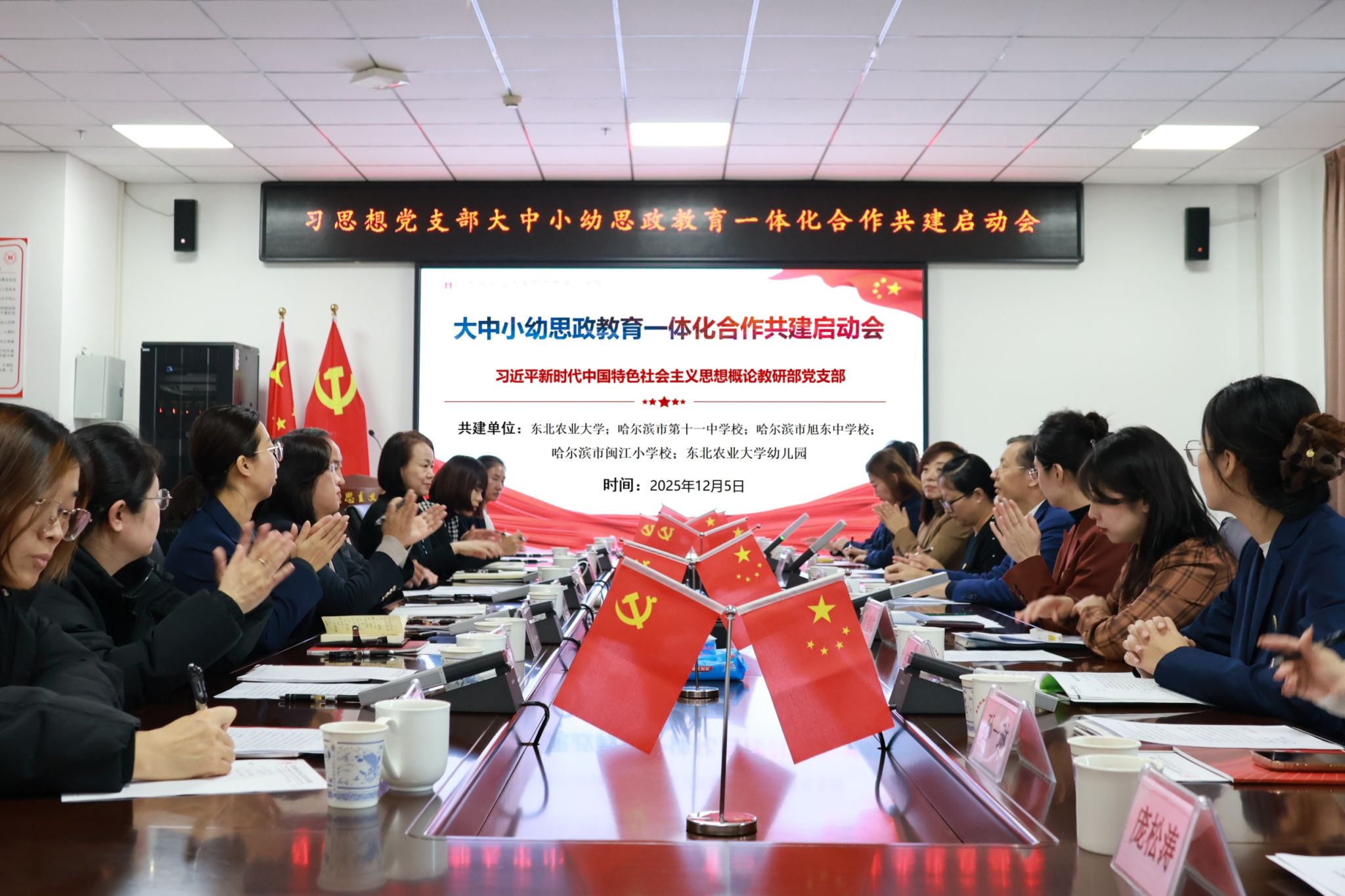 12月5日下午,马克思主义学院习近平新时代中国特色社会主义思想概论教研部党支部联合哈尔滨市第十一中学校、旭东中学、闽江小学等多家单位在成栋楼1010会议室举行合作共建启动会。哈尔滨市第十一中学党总支书记校长王作圣,哈尔滨市旭东中学副校长张丽云,闽江小学党总支书记王惠颖,农大幼儿园园长李晓梅,马克思主义学院党委书记吕晶出席会议。各学校教师代表,习近平新时代中国特色社会主义思想概论教研部党支部全体党员参加会议,吕晶在会上致辞,会议由唐阿楠主持。