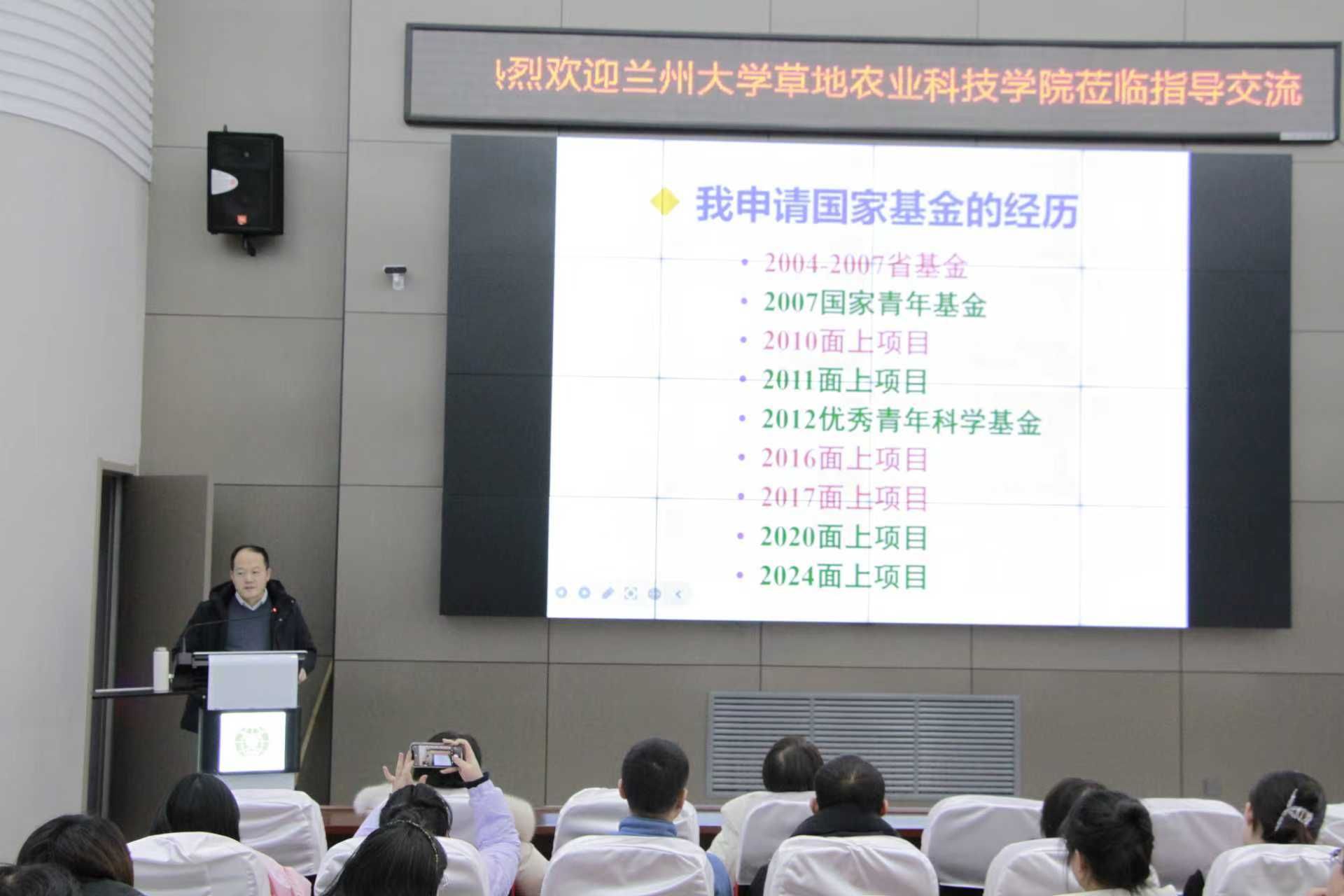 为充分激发草学学科专业教师项目申报积极性,切实提升学术氛围,推动学院科研工作高质量发展,12月16日,动物科学技术学院草学学科邀请国家“优秀青年基金”获得者、兰州大学草地农业科技学院教授张金林作专题报告。全体草学专业师生参会。报告会由草学学科负责人崔国文主持。