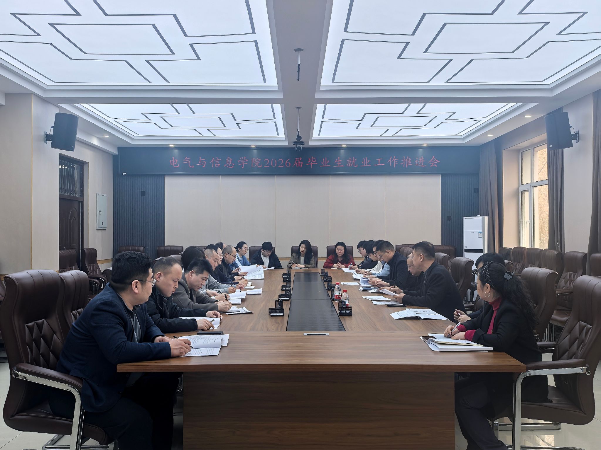 3月24日,电气与信息学院在电信楼219会议室召开2026届毕业生就业工作推进会。学院领导班子、党委委员、各系部主任、党支部书记、行政人员和辅导员参加会议。会议由学院党委副书记汪文斌主持。
