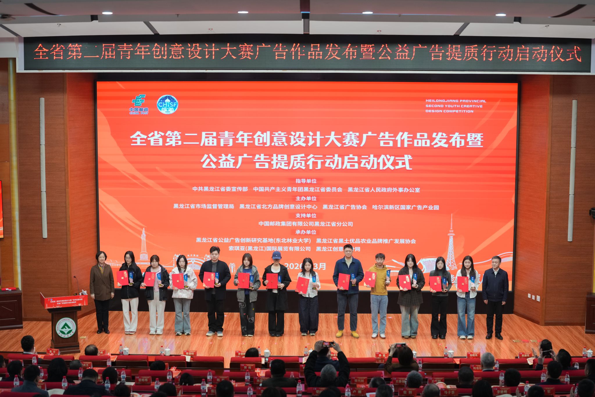 据悉,本次大赛由中共黑龙江省委宣传部、中国共产主义青年团黑龙江省委员会、黑龙江省人民政府外事办公室指导,黑龙江省市场监督管理局、黑龙江省广告协会等单位主办,旨在挖掘更多青年创意设计人才,赋能龙江文化传承与产业高质量发展,是省内极具行业认可度的青年创意设计赛事。本年度赛事共吸引国内外多所高校及多家单位、设计机构参与,并有俄罗斯、英国、韩国和马来西亚等国家和地区创作者踊跃投稿,共收到参赛作品1031件(套),经专家多轮严格评审与大众投票环节,最终评选出等级奖作品20组,金奖共设2项,等级奖获奖占比不足2%。