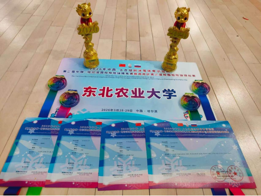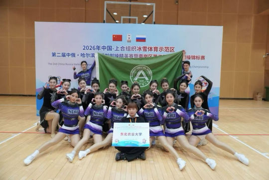 近日,2026年中国-上合组织冰雪体育示范区第二届中俄·哈尔滨国际啦啦操精英赛暨南岗区第三届校园啦啦操锦标赛在哈尔滨市人民体育馆举行,经过两天激烈角逐,由我校体育教研部教师刘磊担任教练,19名运动员组成的健美操队以优异的表现斩获全胜,一举包揽公开青年乙组双人爵士、双人花球、爵士规定动作、花球规定动作全部四项赛事的第一名。