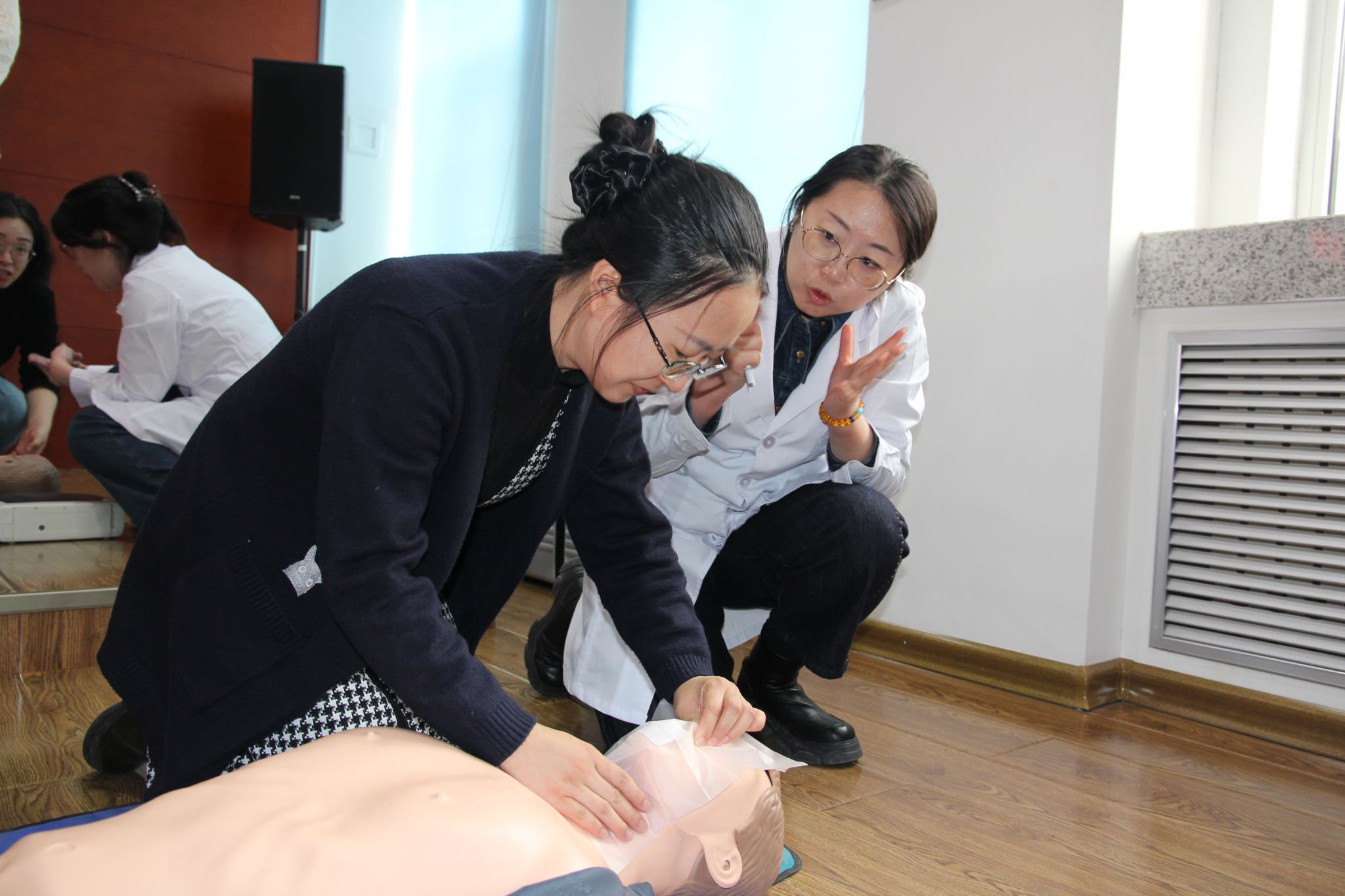 培训现场,王仁莉结合冬春季节心脑血管疾病高发的特点,重点讲解了突发疾病的识别要点、基础急救流程及注意事项。在实操互动环节,职工们在指导下认真练习关键急救动作,现场学习氛围浓厚。