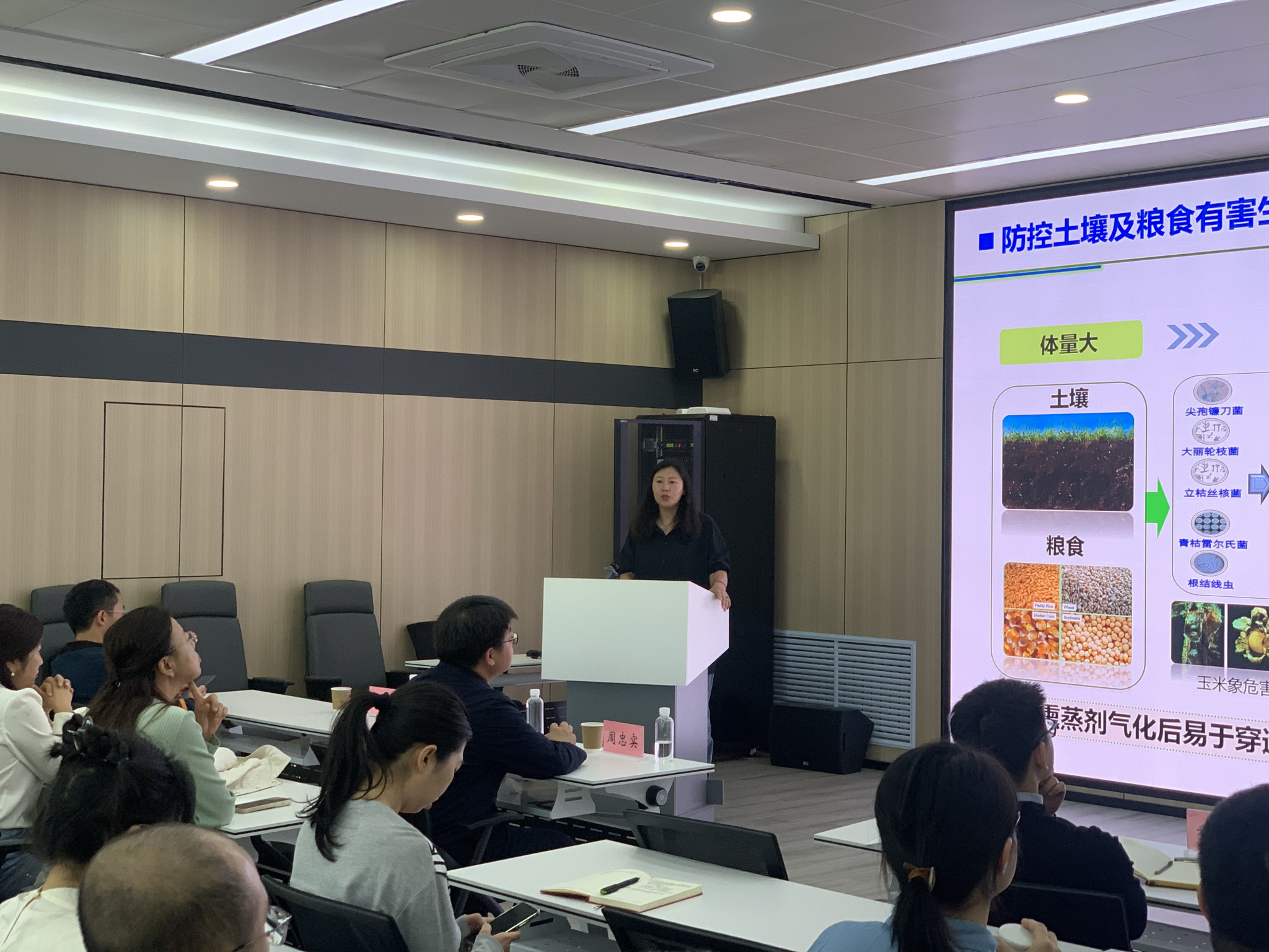 王秋霞作题为《土壤消毒技术研究进展及其应用效果》的学术报告,系统梳理了土壤有害生物防控领域研究进展,重点介绍了棉隆、威百亩等熏蒸剂应用原理、新型土壤熏蒸剂研发及土传病害防控技术体系构建成果,分享了该技术在农业生产与产业扶贫中的应用成效,为土壤健康与土传病害绿色治理提供了实用方案。
