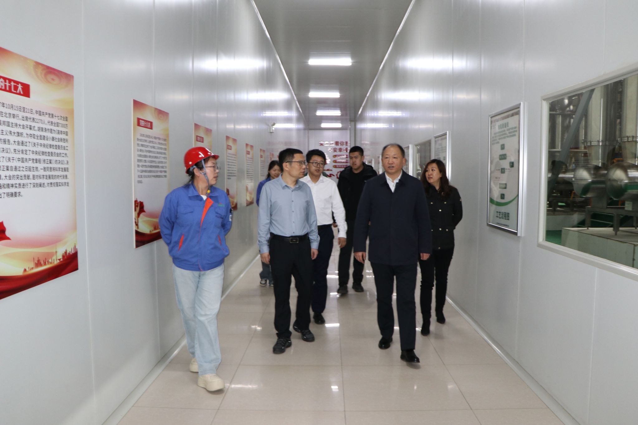 施喜军一行首先参观了企业展览馆,观看了企业宣传片,深入了解公司发展历程与核心业务。随后,大家走进生产车间,近距离考察学习氨基酸等产品的生产全过程,对企业的技术优势和生产能力有了直观认识。