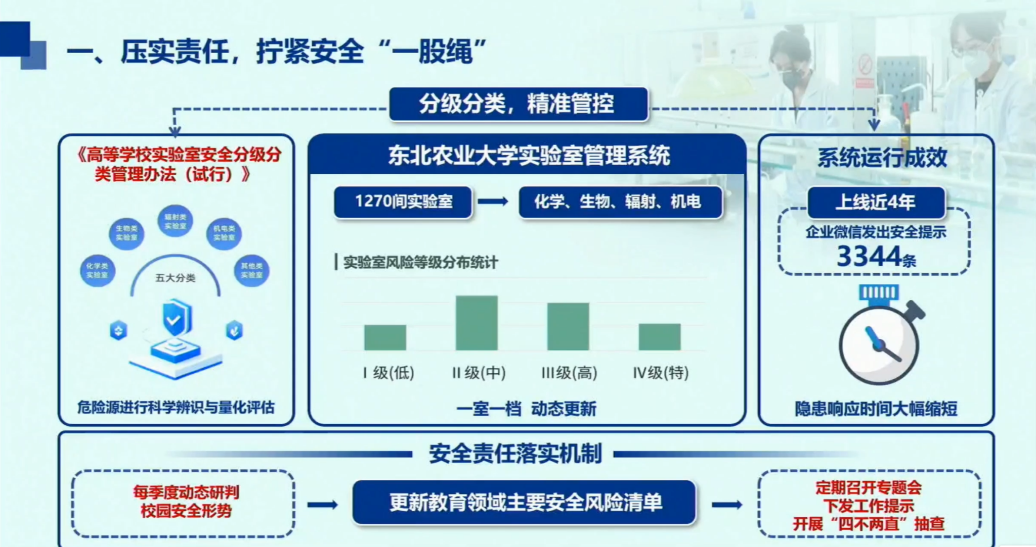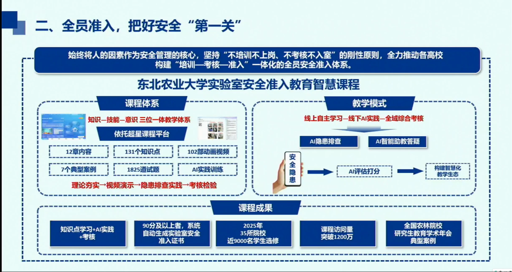 黑龙江省教育厅副厅长赵雅琴以《全员准入·数智闭环 筑牢黑土地上的安全防线——黑龙江高校实验室安全管理的探索与实践》为题,结合黑龙江省各高校实验室安全管理典型案例,交流了区域高校实验室安全治理的有效路径。报告中将我校实验室安全管理系统、实验室安全准入教育智慧课程作为优秀案例进行介绍,彰显了我校在实验室安全管理方面的成效与特色。