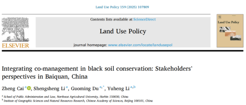 近日,我校公共管理与法学院城乡公共治理团队在土地利用与公共治理领域国际顶级期刊《Land Use Policy》(中科院1区TOP)发表题为“Integrating co-management in black soil conservation: Stakeholders' perspectives in Baiquan, China”的科研论文。成果系统揭示黑土地保护共同管理体系的纵向治理机理,深入阐释体系优化路径。团队紧扣城乡融合、乡村振兴等国家重大战略与地方治理需求,聚焦城乡公共事务统筹治理,为推进治理体系和治理能力现代化提供重要学术支撑与实践参考。