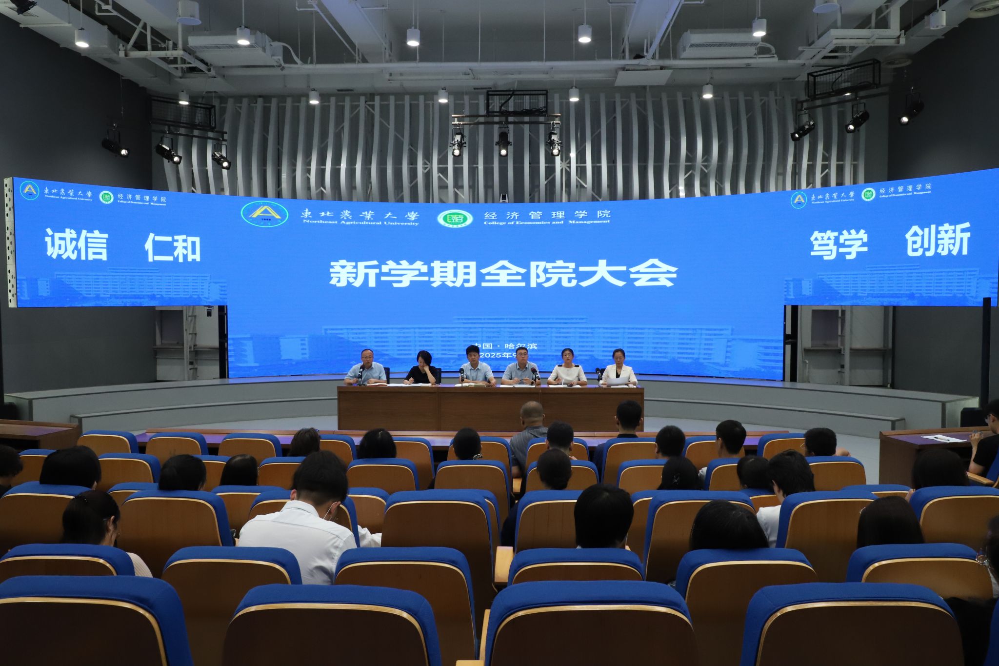 为全面部署新学期各项工作,确保学院各项事业开好局、起好步,共同推动学院的教育教学、科研及管理工作迈上新台阶,9月3日下午,经济管理学院在成栋楼13楼大数据与智能商务报告厅召开新学期全院教职工大会。学院党委书记王洪亮,院长余志刚,党委副书记高天琦,正处级辅导员孙珠红,副院长王刚毅、王洋和全体教职工参加会议。