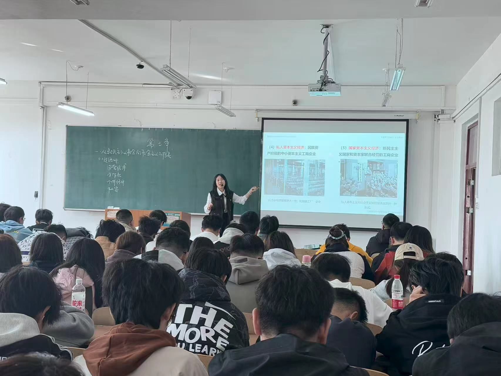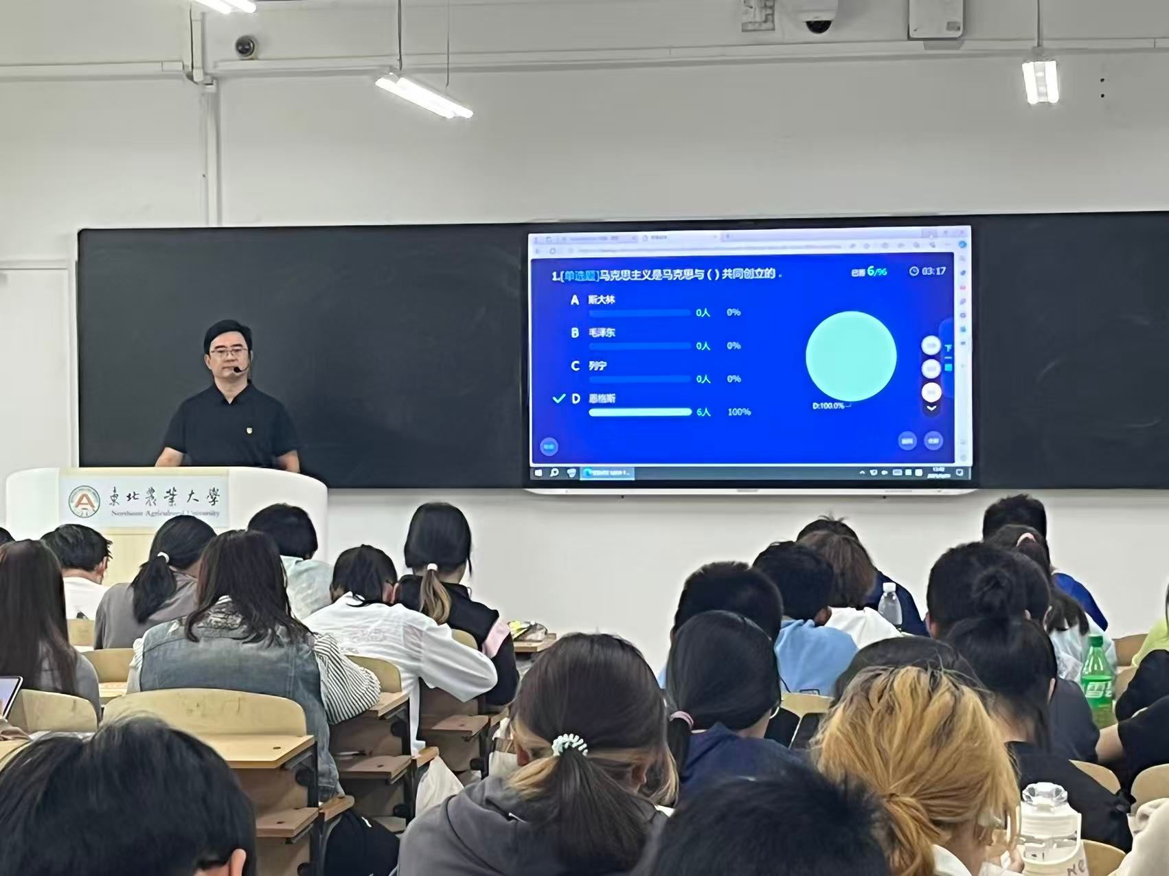 本次活动历时七周,涵盖“马克思主义基本原理”“毛泽东思想和中国特色社会主义理论体系概论”等6门思想政治理论课。张峰、唐阿楠、王艺鑫、王丰良、陆思雨、孙晓惠6名教师代表各教研部进行现场教学展示,全面呈现思政课教师扎实的理论功底与教学创新力。展示过程中,教师们聚焦立德树人根本任务,通过经典文本解读、热点事件剖析、红色影像沉浸等多种形式,实现理论阐释与实践观照的有机结合。课堂注重激发学生的主体性,引导学生在思辨中深化理论认知、在交流中凝聚价值共识,充分彰显了新时代思政课的教学活力与思想引领力。