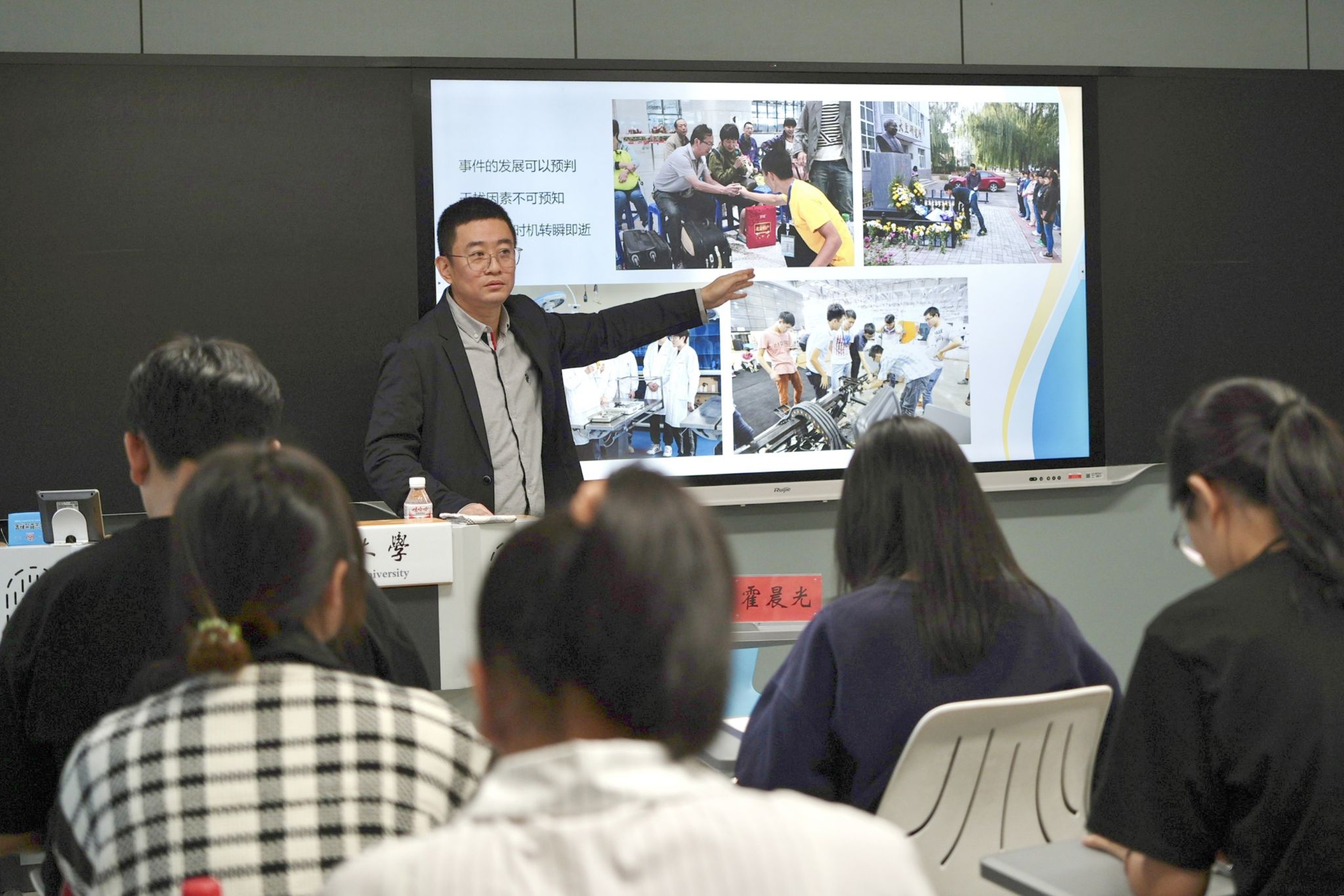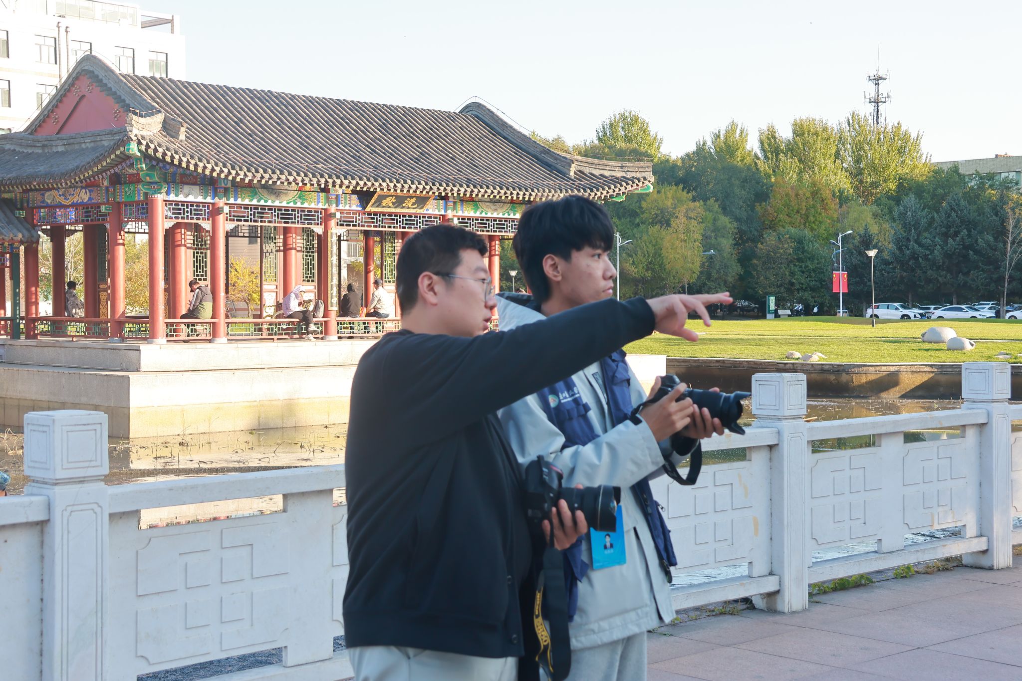 10月15日,宣传部文化建设科科长钱振宁为学生带来实践教学。他结合会议活动与校园风物拍摄经历,从拍摄前期准备、工作注意事项、拍摄题材选取等方面进行经验分享,并在后稷园进行校园风物的拍摄实操。