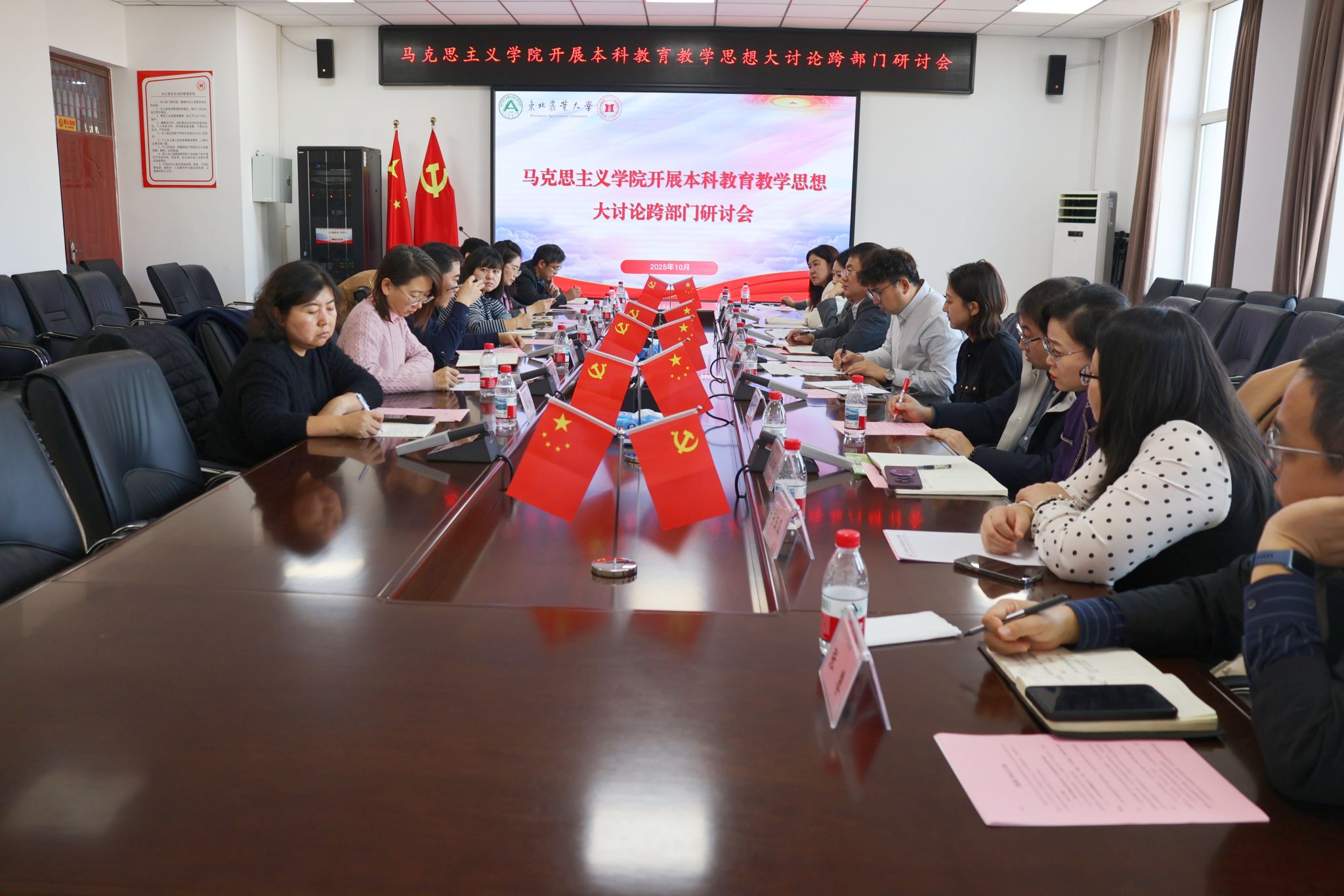 近日,马克思主义学院牵头承办本科教育教学思想大讨论跨部门研讨会。会议根据《东北农业大学本科教育教学思想大讨论活动实施方案》工作要求,结合我校召开的教育强国建设三年行动计划综合改革推进会会议精神,围绕思想大讨论研讨主题及国家战略急需农科人才培养综合改革任务展开研讨。教务处、学生工作部(学生处、武装部)、校团委、高教研究与教学质量评估中心相关人员及各学院教学副院长参会。会议由马克思主义学院副院长刘大勇主持。