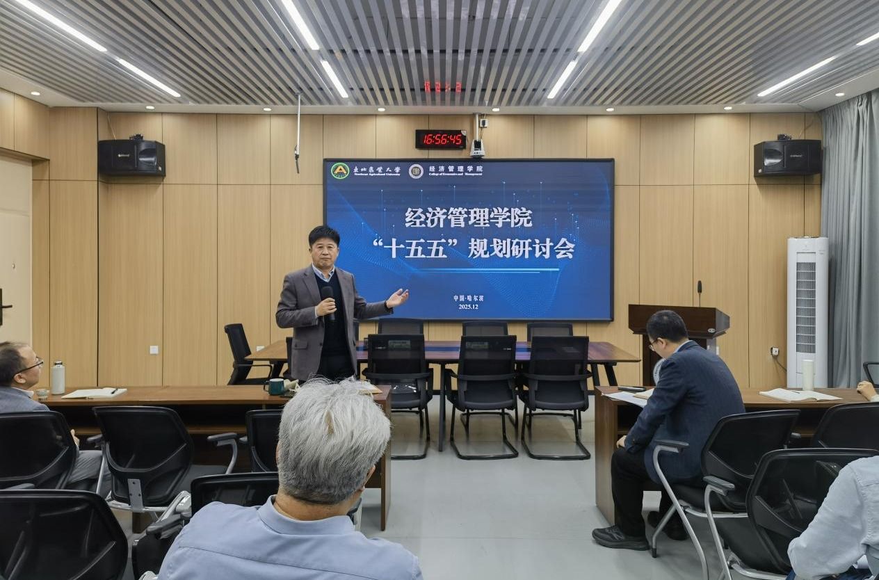12月10日下午,经济管理学院在成栋楼720会议室召开“十五五”规划研讨会。研讨会旨在通过对标对表、深入剖析,系统梳理学院各专业及学科在“十四五”期间取得的标志性成果,并就“十五五”期间的发展重点、预期目标及破局思路进行深层次探讨。学院党政领导班子、“十五五”规划编制组成员出席会议,各系(室)主任、学科带头人及骨干教师参加会议。会议由学院院长余志刚主持。