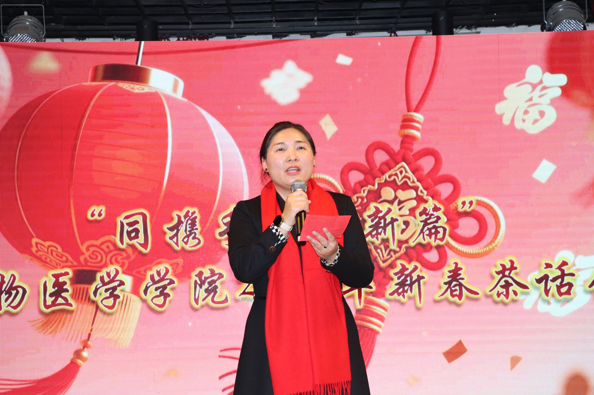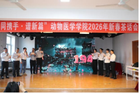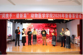 新岁序开,肇启新章。为增强教职工凝聚力、向心力,充分展现学院教工团结奋进、昂扬向上的精神风貌,12月31日下午,动物医学学院在临床教学医院举办“同携手·谱新篇”2026年新春茶话会。学院领导班子成员及全体教职工齐聚一堂,共叙情谊、同迎新春。茶话会由青年教师吴志勇、仇天新、王馨笛、马景龙主持。