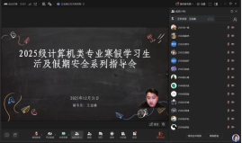学院高度重视此次寒假前的学生教育工作,要求全体辅导员结合所带学生实际情况,进行个性化、精准化指导。各位辅导员积极响应,精心筹备,分别组织召开了年级大会、专业班会、线上答疑会等多种形式的指导会议。