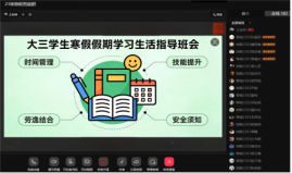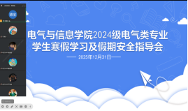 为帮助学生科学规划寒假学习生活,提升安全意识,确保度过一个充实、平安、有意义的假期,近日,电气与信息学院组织全体辅导员面向各年级、各专业学生,以线上线下相结合、分散指导与个别交流相补充的形式,开展了寒假学生学习、生活及假期安全系列指导活动。
