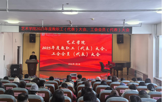 1月5日,艺术学院2025年度教职工大会、工会会员大会在新艺楼447室顺利召开。校工会副主席王春辉出席会议,学院领导班子成员、全体教职工及工会会员参加会议。会议由学院党委副书记兼工会主席宁峥嵘主持。