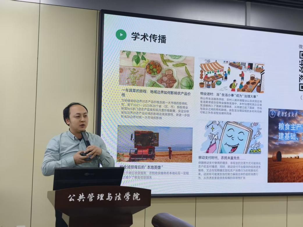为精准对接师生学术论文写作与发表需求,搭建高水平学术交流平台,1月7日下午,公共管理与法学院在成栋楼1106会议室举办第三十五期社稷讲坛之期刊工作坊。活动邀请了《经济评论》主编叶初升、《管理世界》副总编辑柏晶伟、《学习与探索》主编房宏琳、《南京农业大学学报(社会科学版)》常务副主编宋雪飞、《西北农林科技大学学报(社会科学版)》常务副主编王倩、《西北农林科技大学学报(社会科学版)》编辑部主任张洁、《华中农业大学学报(社会科学版)》执行主编范敬群、《华南农业大学学报(社会科学版)》常务副主编段伟、《中国农业大学学报(社会科学版)》副主编肖时花、《农业经济与管理》常务副主编曲丽丽等期刊领域专家进行交流。学院50余名骨干教师和研究生代表参加会议。会议由学院院长程镝主持。