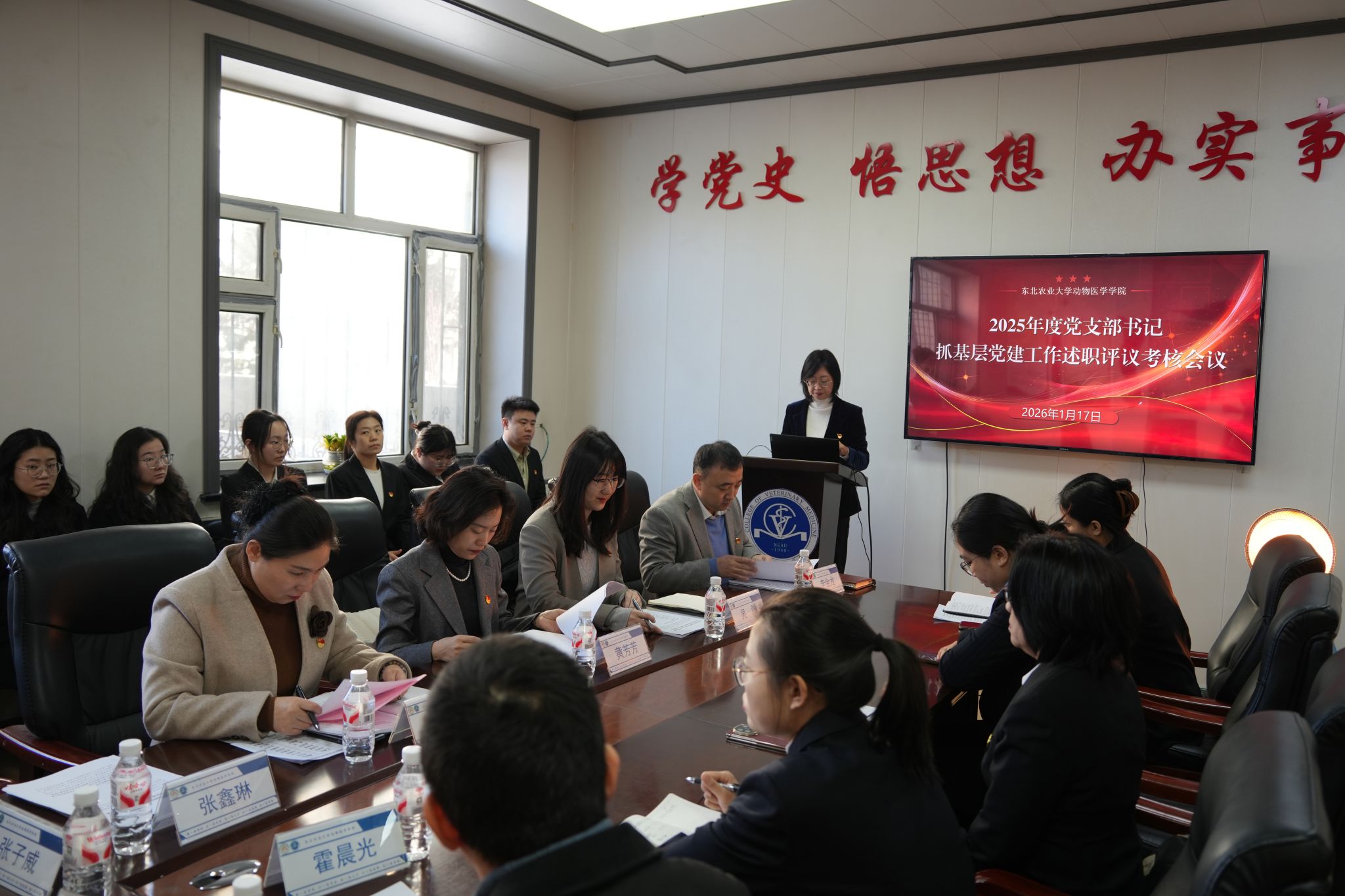 为进一步压实基层党建工作责任,按照《东北农业大学2025年度党组织书记抓基层党建工作述职评议考核工作实施方案》要求,1月17日上午,动物医学学院召开2025年度党支部书记抓基层党建工作述职评议考核会议,学校党委专项工作组成员、学院领导班子成员、全体党支部书记参加会议。会议由学院党委副书记张鑫琳主持。