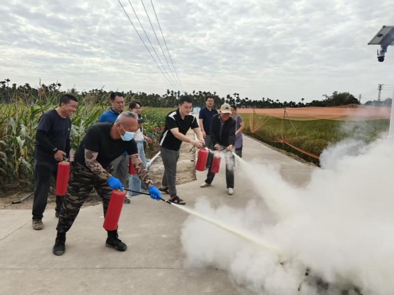 理论学习后,全体人员在南繁基地综合楼前空地开展灭火实操演练,在实践中巩固了理论知识,提升了应急处置能力,并对新购置的20瓶水基灭火器进行了安装摆放,确保人人熟知灭火器材的具体位置,增强了应对突发火灾的信心和能力。整场演练紧张有序、分工明确,达到了以练促防的良好效果。