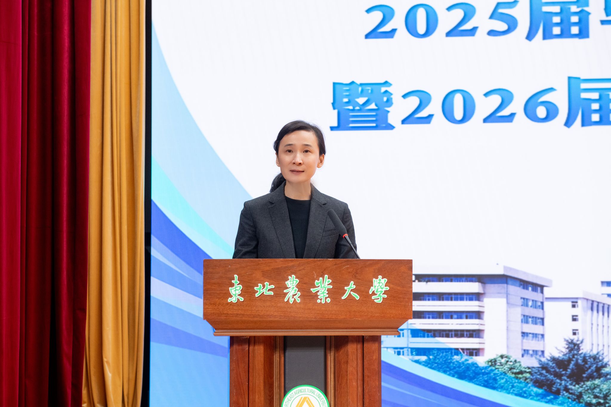 姜毓君宣读《东北农业大学关于表彰2025届毕业生就业工作先进个人的决定》,并为获奖个人颁奖。